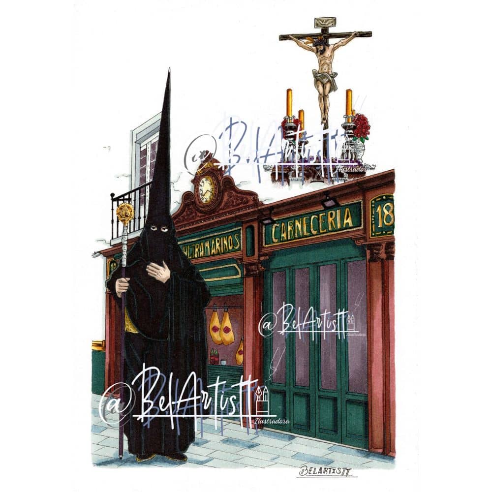 Juntas, las seis láminas forman un recorrido visual por distintos paisajes urbanos y hermandades: túnicas, cirios, varas, capirotes y los pasos asomados en la parte superior de la obra, que cuentan la Sevilla cofrade de siempre reinterpretada hoy con el color y el trazo único de Belartistt. Colocadas en línea o en dos filas, crean una auténtica galería de nazarenos en cualquier pared: salón, pasillo, estudio o rincón cofrade.